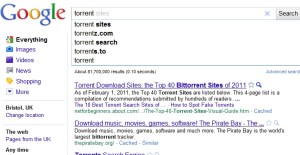 Google started to filter search suggestions that include terms associated with copyright infringement like “torrent”, “bittorrent”, “rapidshare”, “megaupload”. It’s a slippery slope and Google’s suggestions will be less useful since they’ll no longer include many popular searches.